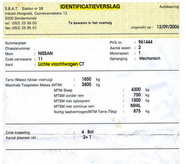 - Binnen de 30 dagen na herbeproeving dient het voertuig voorgereden te worden in een keuringsstation met attest van herbeproeving uitgereikt door een erkende installateur.